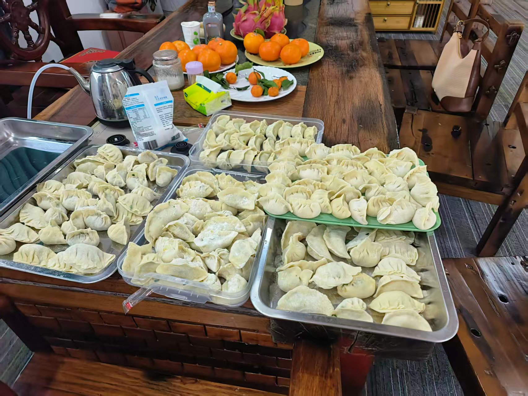 負責搟皮的家人們也不甘示弱,他們手法嫻熟,一張張薄厚均勻、圓潤如月的餃子皮在他們手中飛速誕生。現場沒有生疏的客套,只有家人間默契的配合與此起彼伏的歡聲笑語。當加入了「百膳湯」的餡料與精致的皮子相遇,圍坐在一起包餃子便成了最溫馨的時刻。一雙雙巧手上下翻飛,捏出的不僅是形態各異的餃子,更是一份份沈甸甸的祝福。在這個過程中,職位的高低、年齡的差距統統消融,只剩下最純粹的親情與信任。